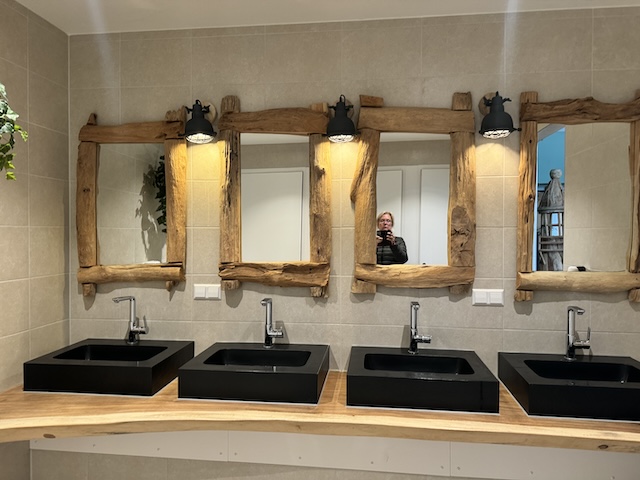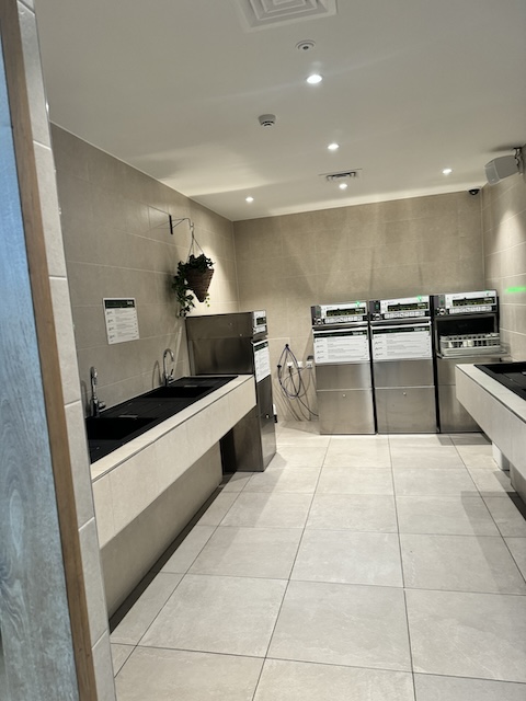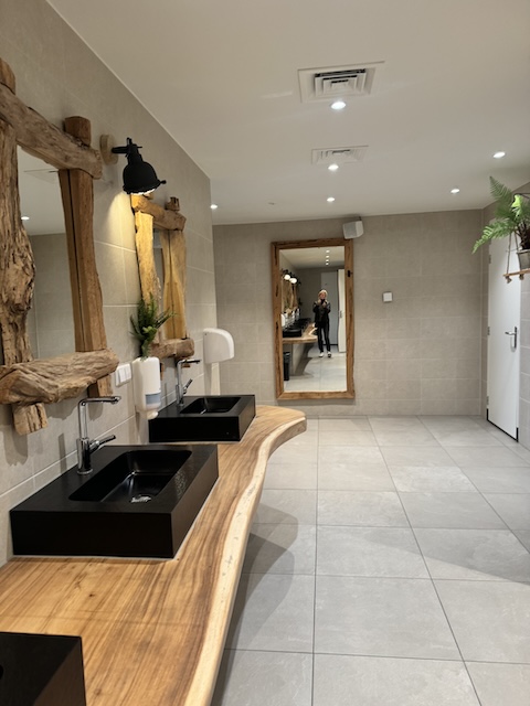 Nach dem Aufbau bestaunen wir noch das Sani. So eins haben wir bisher noch nicht gesehen, top modern und riesig. Scheint hier ein richtiger Luxusplatz zu sein😳👍