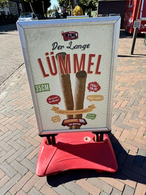 Das Navi leitet uns durch Renesse, obwohl der Wochenmarkt zu Ende, bauen noch ein paar Verkäufer ihre Stände ab, so das wir uns mit dem Gespann etwas fest fahren.