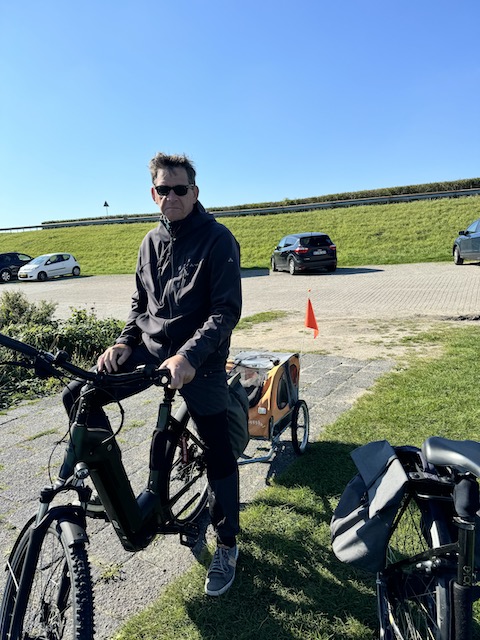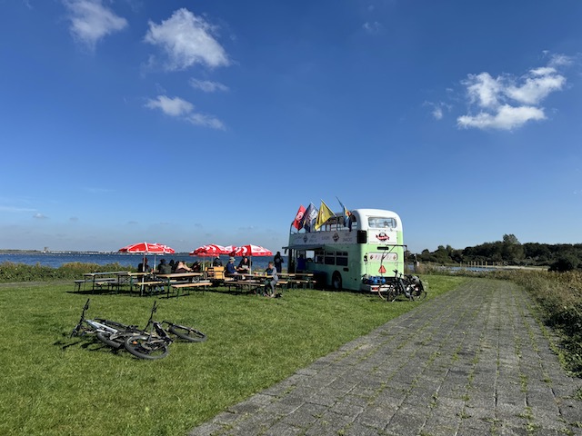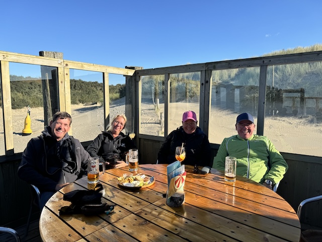 Für den Nachmittag haben wir uns mit Andrea‘s Kollegen in einer Strandbude verabredet. Dort fahren wir schnell mit dem Rad hin.